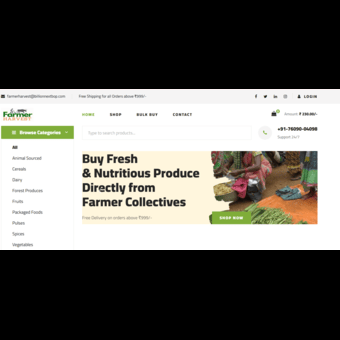 Farmer Harvest (farmerharvest.in) is India’s first end2end e-commerce platform exclusively showcasing products and services of Farmer Collectives including Producer Companies and Self Help Groups.